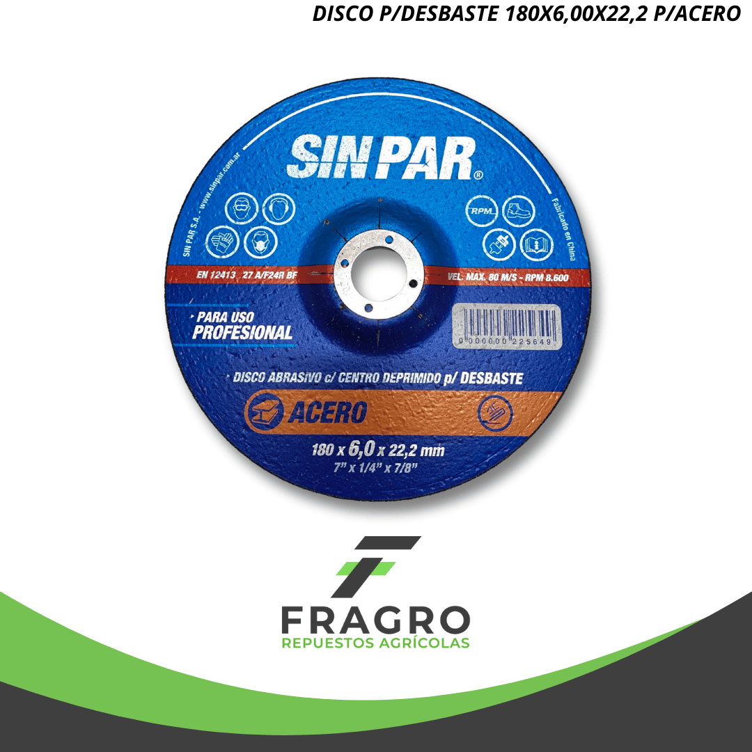 DISCO P/DESBASTE 180X6,00X22,2 P/ACERO
